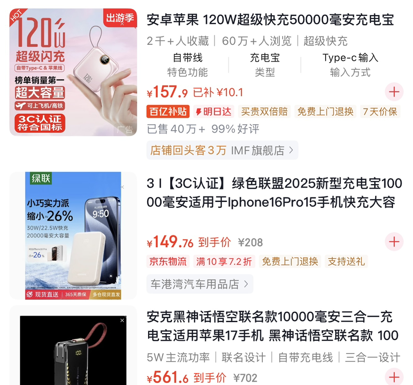 头图为充电宝商品截图
