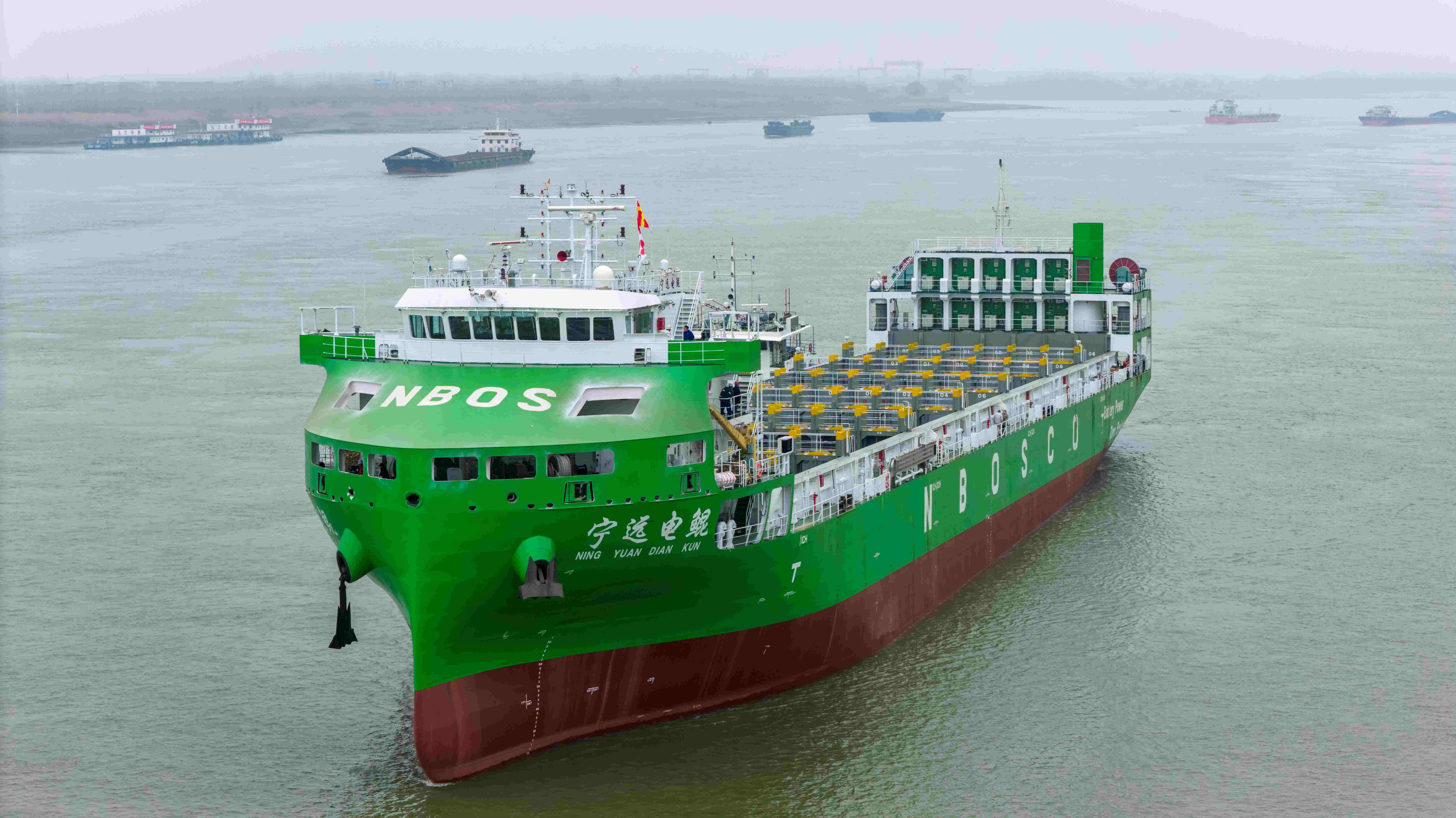 4月15日,中国首艘、世界最大740TEU纯电动智能集装箱海船“宁远电鲲”号交付,将投入宁波—乍浦沿海航线运营,开启我国沿海集装箱运输零排放、智能化、高效率新纪元。