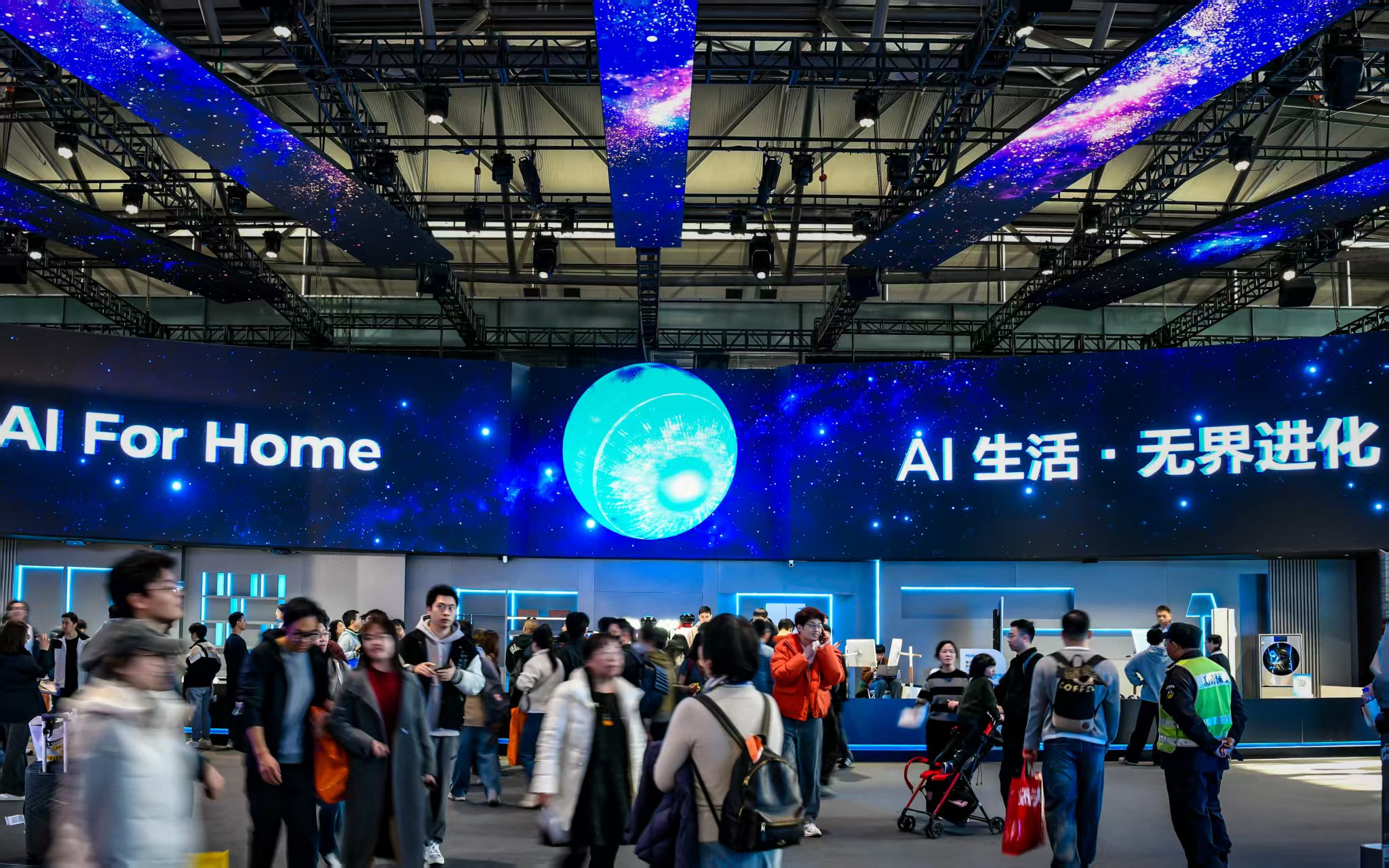 头图为AWE2026现场,AI成为消费电子展品“标配”。劳动报颜筱依摄