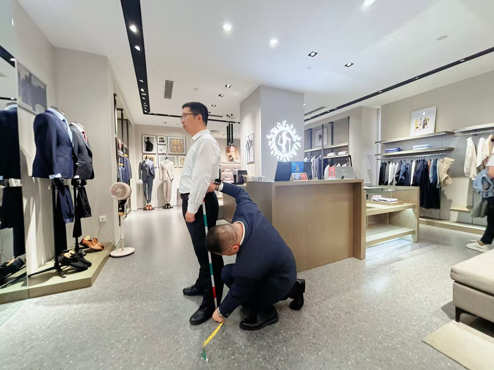 “高矮胖瘦、有‘啤酒肚”或是‘麒麟臂’,想要通过衣物来修饰身形,但是成衣又刻板且有局限性。这时,如果顾客有需要,我们就可以为其进行‘定制’。”陈爱刚告诉劳动报记者,品牌入驻第一八佰伴已有二十多年,“定制”服务由来已久,悄然通过“口碑相传”而为顾客熟知。“商务需求需要着正装,也有休闲夹克,短袖的少一些、男装多是长袖款。从版型设计到成衣制作,周期大约在3周左右。每一个环节都认真对待,仿若将一件‘工艺品’般交付到顾客手中,尽力追求完美。”