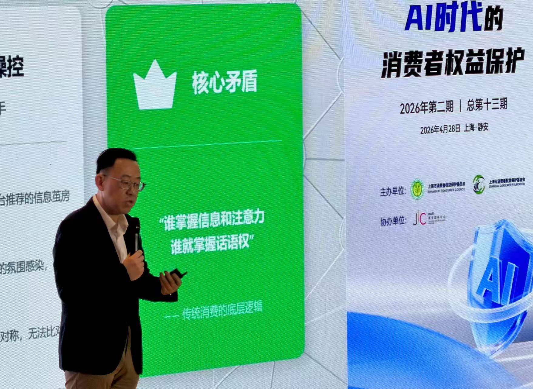 4月28日,2026年第二期“提振消费 维护权益”大讲堂在上海开讲。本次活动由上海市消保委、上海市消保基金会主办,上海静安国际中心协办,以“AI时代的消费者权益保护”为主题,汇聚政府部门、科技企业、品牌平台、法律专家等各界代表,共同探讨智能时代消费维权的新路径、新方案。