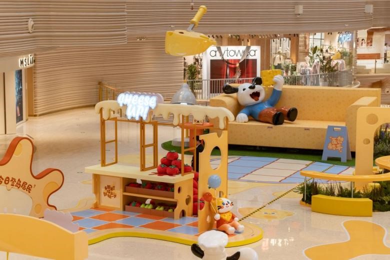 步入虹桥前湾印象城MEGA,一座明黄色“芝士岛”跃然眼前。近10米高的“芝士流心瀑布”从峡谷中庭倾泻而下,八大主题美陈串联L1至L2,形成沉浸式漫游动线。“芝士小狗之家”的巨型沙发邀你“躺平”解压,芝芝料理间重现过家家场景,芝味餐吧开启奶香派对,整座商场化身为可玩、可憩、可分享的童话岛屿。
