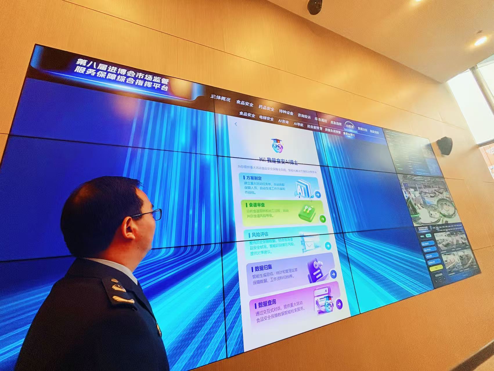 本届进博会食品安全保障迎来“智慧升级”,上海市场监管部门自主研发的“食安AI博士”智能体成功嵌入市场监管综合指挥平台,首次为进博会服务保障工作提供全流程智能化支持。