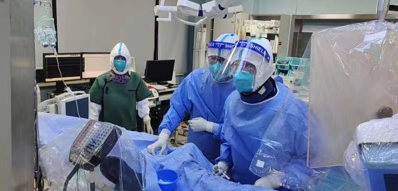 一边是人命关天的责任,一边是疫情扩散的风险。疫情防控遭遇心肌梗死等急危重症,怎么办?市十医院按照国家防控指南和医院实施预案,迅速敲定细化流程,创造性地提出“急诊部(胸痛中心)-专用通道-心血管内科导管室-专用通道-急诊部(抢救室)”闭环路径,徐亚伟亲自带领手术团队在严格三级防护下顺利完成介入治疗,术后无缝转运患者至抢救室,并完成环境消杀,待核酸报告阴性后相关人员解除三级防护,再将患者收治入院。