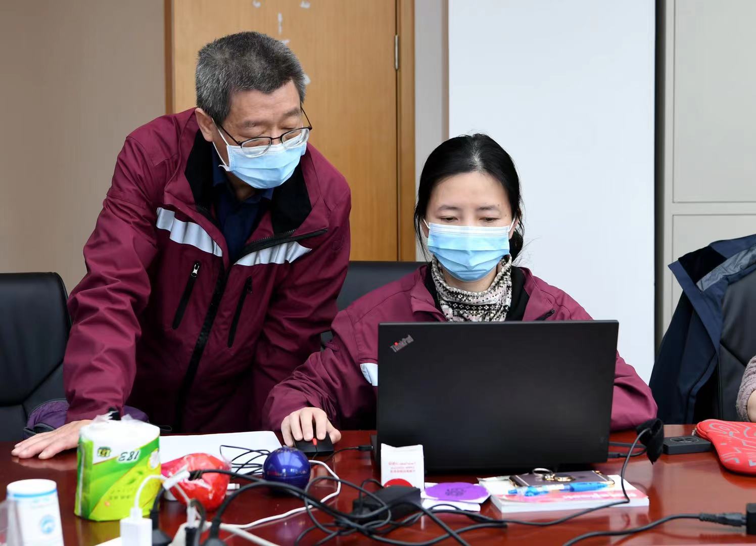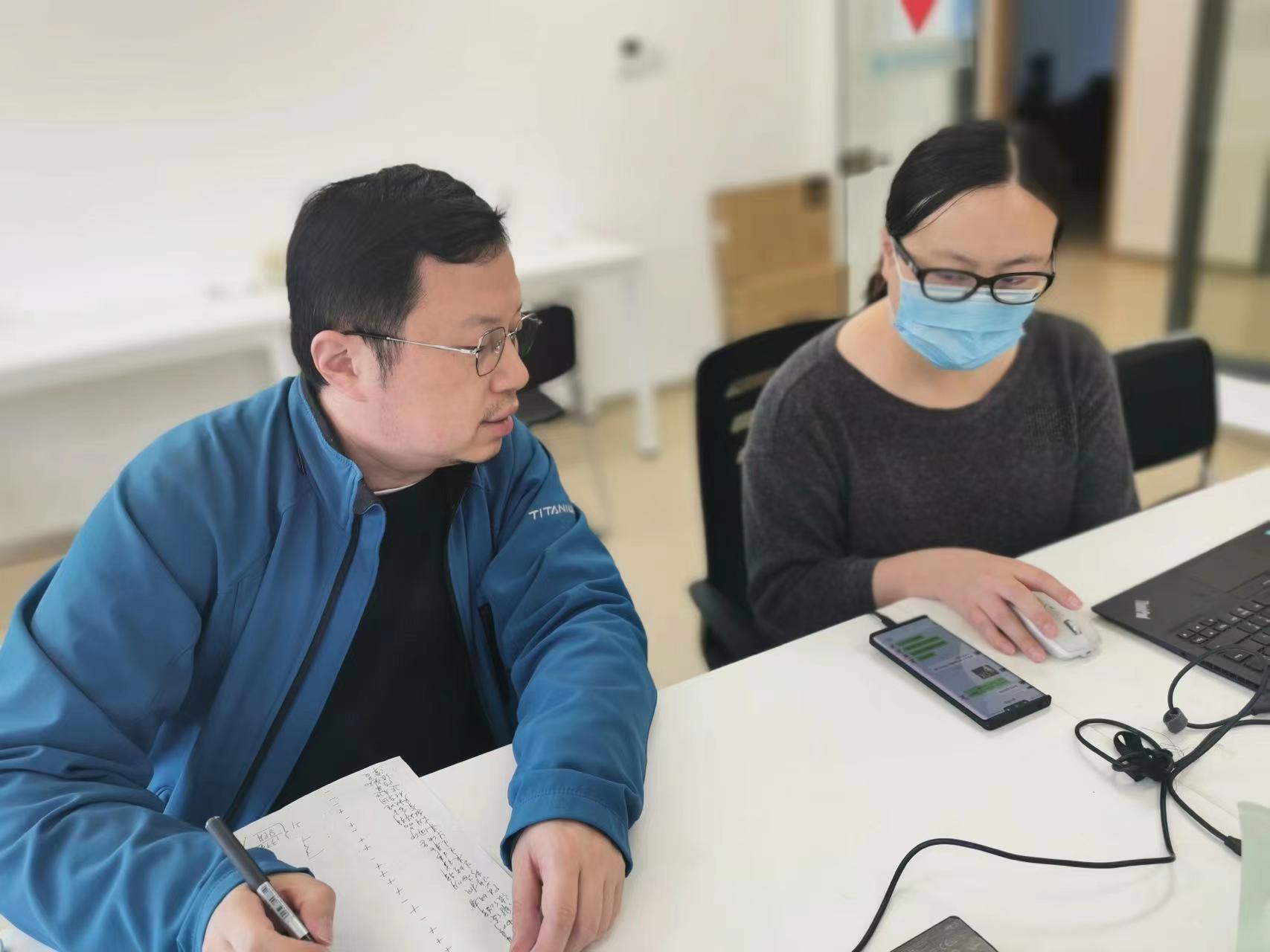 潘启超指导队员进行数据汇总校对