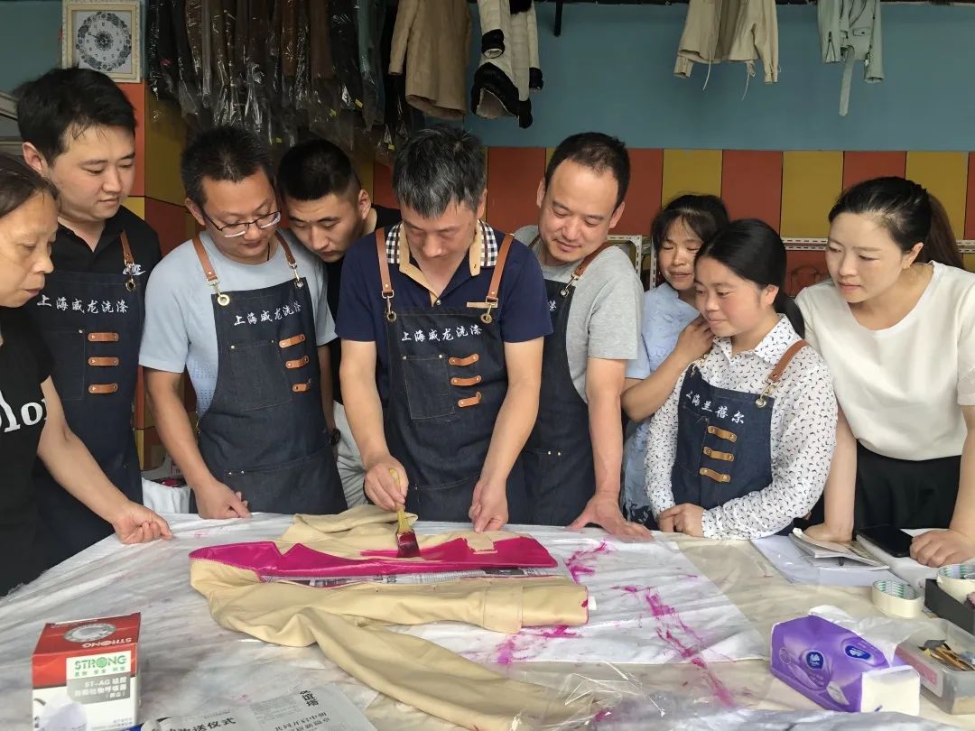 在攻坚洗染难题的同时,王雪峰担起了传道授业解惑的重任。他在技术交流会上分享经验、在行业杂志上发表技术性文章,还利用自媒体把业务上的心得体会和创新经验无偿地分享给同行。因为深切体会到学技术的不易,王雪峰特意在公司技师工作室的对面,辟出了一间可以容纳50人的教室,制定了一套完整的培训制度,旨在为青年技工们打造良好的培训环境。每个工作日,他都会把当日处理的新“疑难杂症”解决案例作为教程拿到课堂上分享,让学习更加趣味化。千里迢迢,专门来到上海向他拜师学习洗染技术的年轻人络绎不绝。