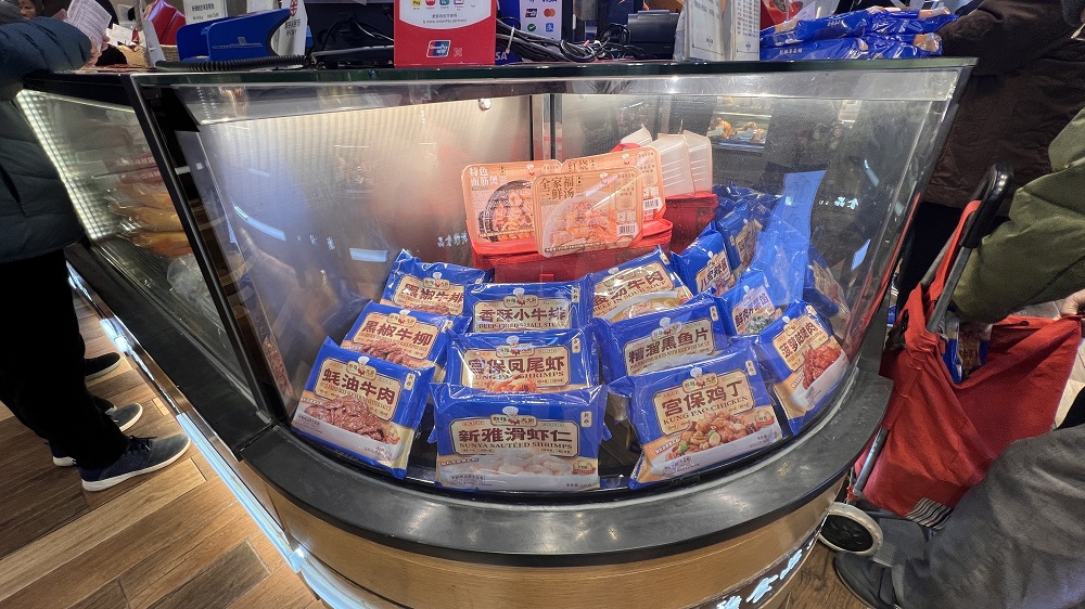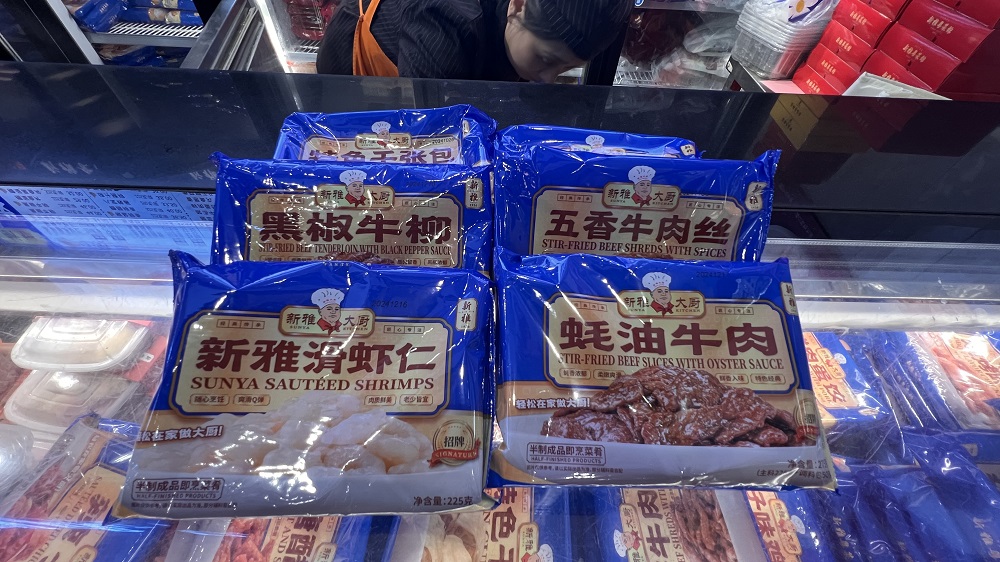 走进新雅粤菜馆,首先映入眼帘的是焕然一新的半成品佳肴展示。从经典的蚝油牛肉、滑虾仁,到独具风味的糟溜黑鱼片、黄金炸猪排,每一款菜品都换上了简约而雅致的蓝色新装,为新雅的传统美味增添了一抹现代风情。这些佳肴错落有致地陈列在冰柜内,仿佛在诉说着新雅对美食的追求。