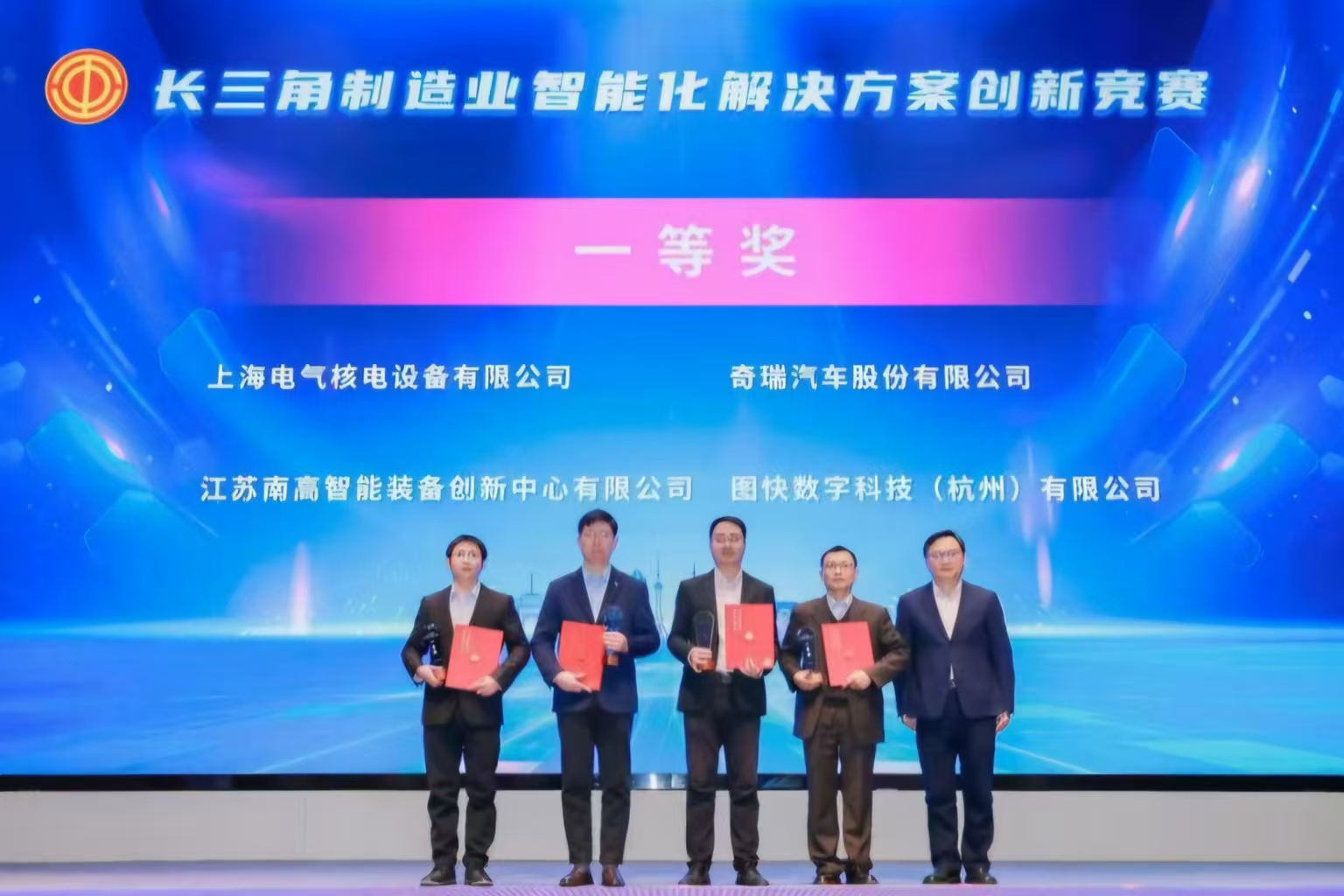 经过现场路演与答辩等方式角逐,最终上海电气核电设备有限公司、江苏南高智能装备创新中心有限公司、图快数字科技(杭州)有限公司、奇瑞汽车股份有限公司获得本次竞赛一等奖,另有6家单位荣获二等奖,6家单位荣获优胜奖。