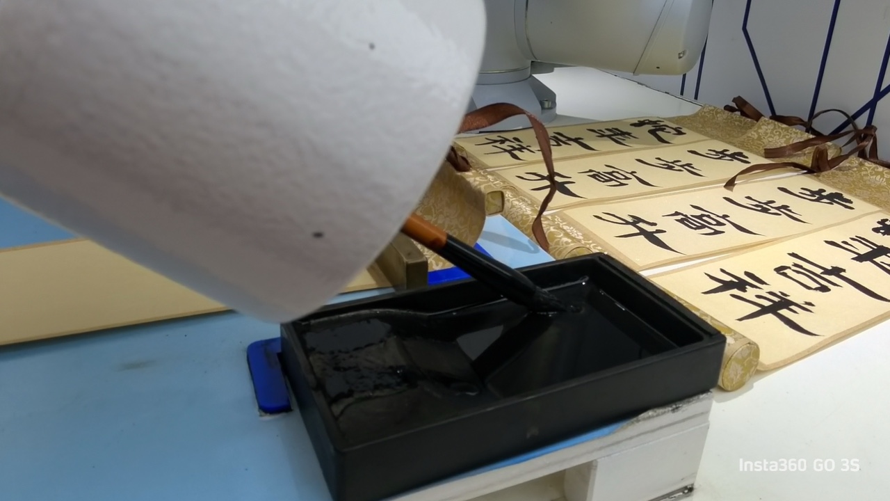 在大家的期待中,老师启动了机器人。只见它动作娴熟,先将带有螺旋纹路的引流勺稳稳贴在酒杯侧面,接着用另一只手拿起玻璃杯,舀起些许红色鸡尾酒,以极慢的速度通过引流勺倒入酒杯,动作精确到了极致。随后,绿色鸡尾酒登场,缓缓倒入后与红色形成鲜明的分层。紧接着,黄色鸡尾酒倒入,与绿色完美融合,呈现出梦幻的渐变效果。最终,一杯绚丽夺目、如同“红绿灯”般的分层鸡尾酒呈现在眼前,全场爆发出阵阵惊叹。随后,我们参观了“书法家”机器人。看着它稳稳握住毛笔,笔锋游走间,“大有可为”四个大字跃然纸上,笔力刚劲又不失灵动。我们还聆听了机器人领域“工匠”叔叔的精彩分享,接受了专业的小记者职业培训。这次探秘中科新松的旅程,让我亲眼目睹了机器人的神奇,感受到中国科技的飞速发展。“大有可为”,这不仅是对机器人技术的高度赞扬,更是对祖国未来的美好期许。我为自己是中国人而自豪,这场奇妙之旅,也在我心底种下了一颗追逐科技梦想的种子 。