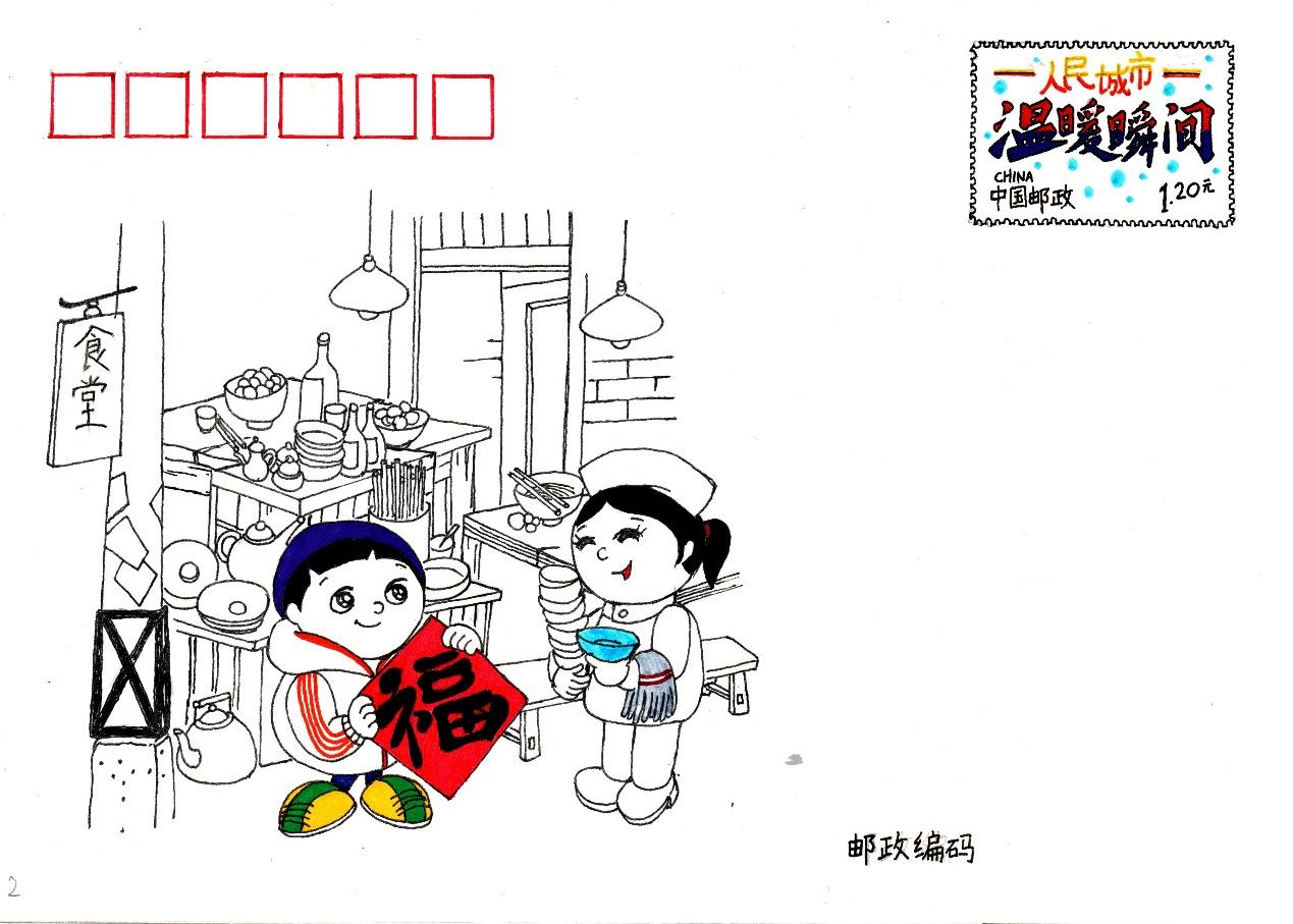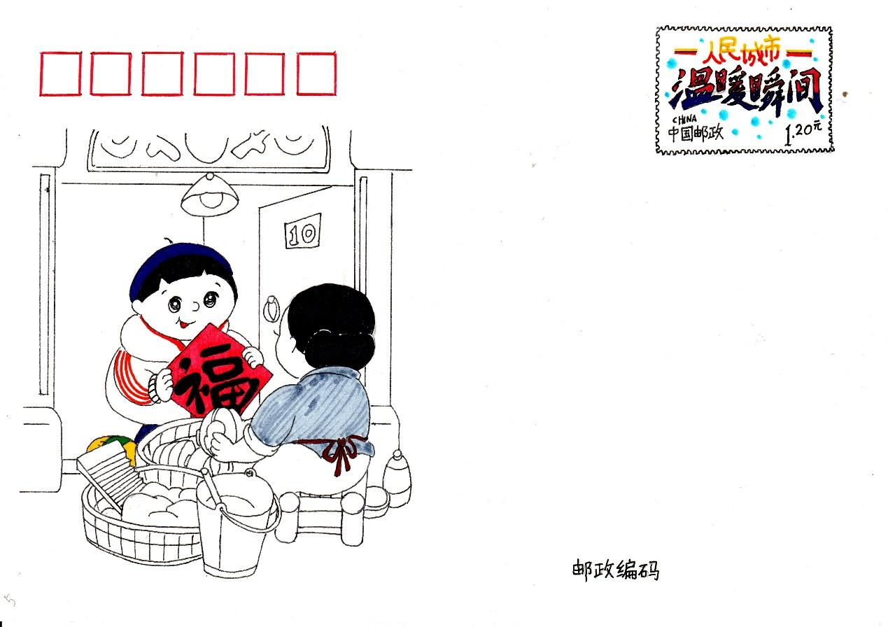 这次作品呈现的形式也突破了传统,以明信片的方式进行展现,这也是为了将“传递”更生动且具体化。画面中的人物都有生活原型,他们有的是上海本土人,有的是外来打工人。我想借此机会为他们送上一份隔空的祝福,希望能够温暖到他们辛勤劳作的每一天。