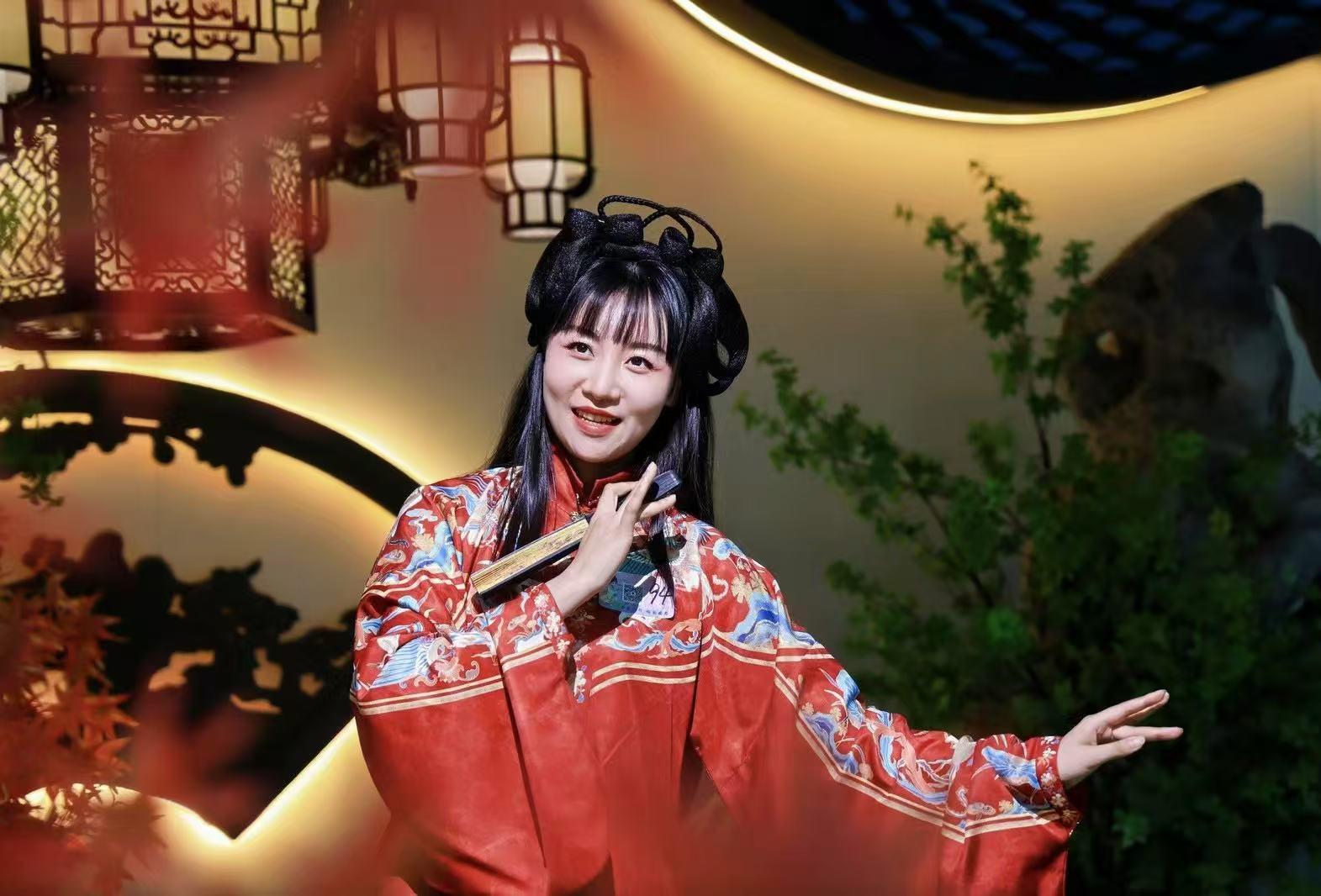 活动伊始,男女嘉宾惊喜地换上精致汉服,由工作人员协助完成造型。在充满古风意蕴的入口处,嘉宾们用毛笔写下心灵寄语,悬挂于签到树上,开启穿越时空的浪漫之旅。外场非遗互动区人头攒动,在草编、剪纸、面塑、龙凤字画四大传统技艺体验摊位前,青年们纷纷驻足尝试。1998年出生的女嘉宾王欣与队友们穿梭于各摊位间,她亲手制作剪纸作品后笑言:“相亲还能学手艺,陌生感一下就打破了!”