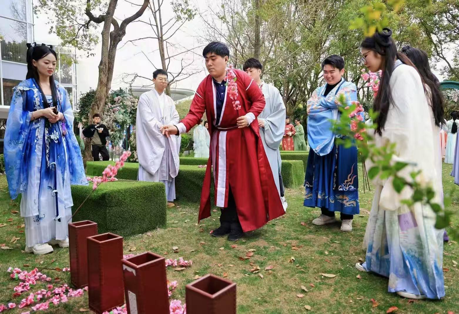 活动以传统文化为纽带,吸引了来自浦东新区百余家企业的百名优秀单身青年参与。通过沉浸式古风体验与趣味互动,年轻人在诗意氛围中邂逅缘分,感受到中华传统婚俗文化的深厚魅力。