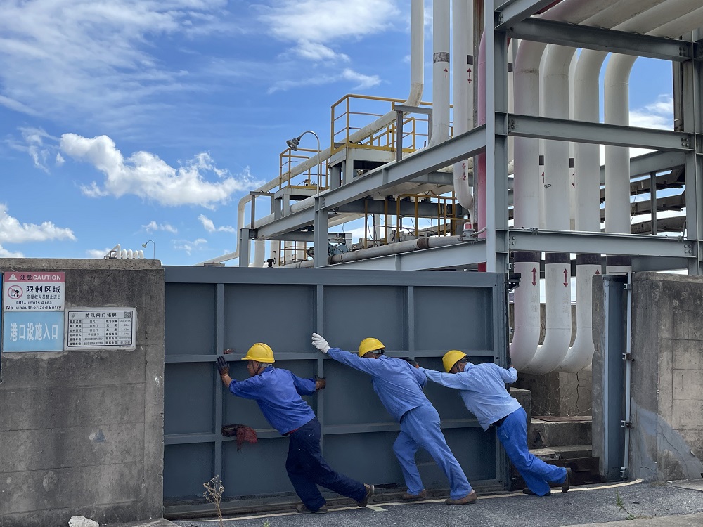 上海LNG洋山接收站是全市应急调峰和安全保供的主力气源。台风来袭,驻守在此的申能人迅速行动,“早准备、早排查、早整改”,用扎实举措守护生产运营安全与能源保供“生命线”。