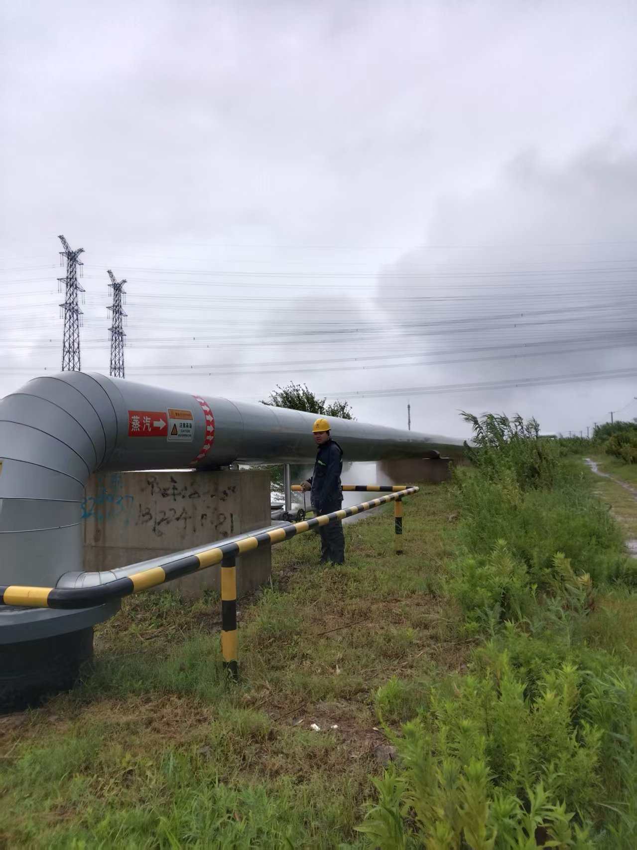7月30日上午,申能能服旗下临港公司所在区域风雨渐趋强劲。一线运维人员坚守岗位、顶风冒雨,对全长6.5公里的供汽管网展开拉网式巡检,全力保障能源供应稳定。
