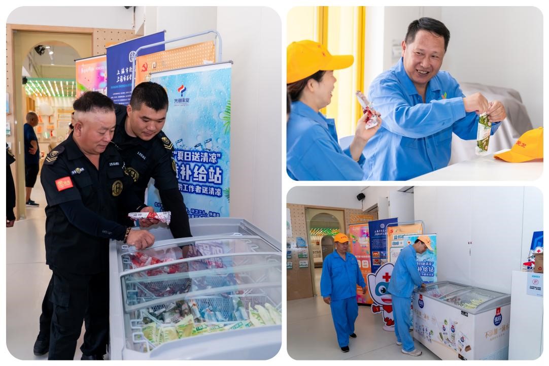 这场清凉行动将持续整整两个月,覆盖上海所有行政区。从外滩的执勤岗亭到郊区的快递集散点,从地铁站旁的志愿者服务站到社区里的党群服务中心,补给站如同撒在城市肌理中的“清凉节点”,编织成一张覆盖全城的暖心网络。据统计,仅启动首周,全市各站点就已送出超过2万支棒冰。