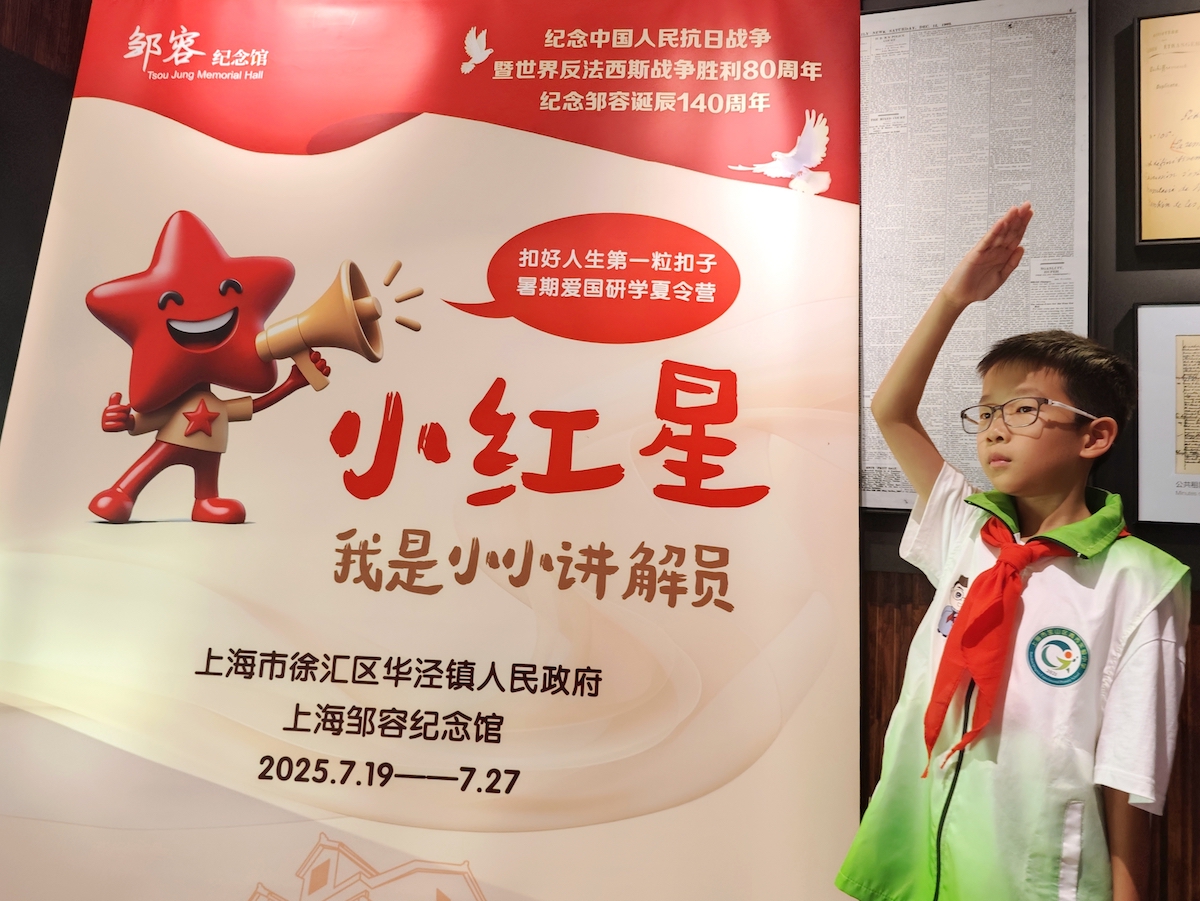 七月的风卷着蝉鸣,钻进邹容纪念馆的青砖缝里。我踮脚望着展柜中那本泛黄的《革命军》,玻璃反光里,我的影子正与百年前那个20岁青年的照片叠在一起——这是参加“小红星——我是小小讲解员”夏令营的第一天。我与邹容的故事,就从这光影相触处开始了。