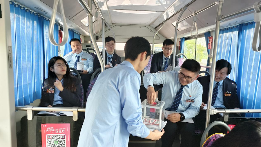 座谈会后,参与本次互访活动的小伙伴们登上金高公交书香巴士剧本游专列,青年们化身“城市书探”,通过线索破解清末实业家张謇与当代浦东规划者跨越百年的对话,探寻“江海之约”背后的发展密码。这趟奇妙之旅让双方青年们既领略浦东改革开放35周年的成果,又增进了青年之间的友谊。