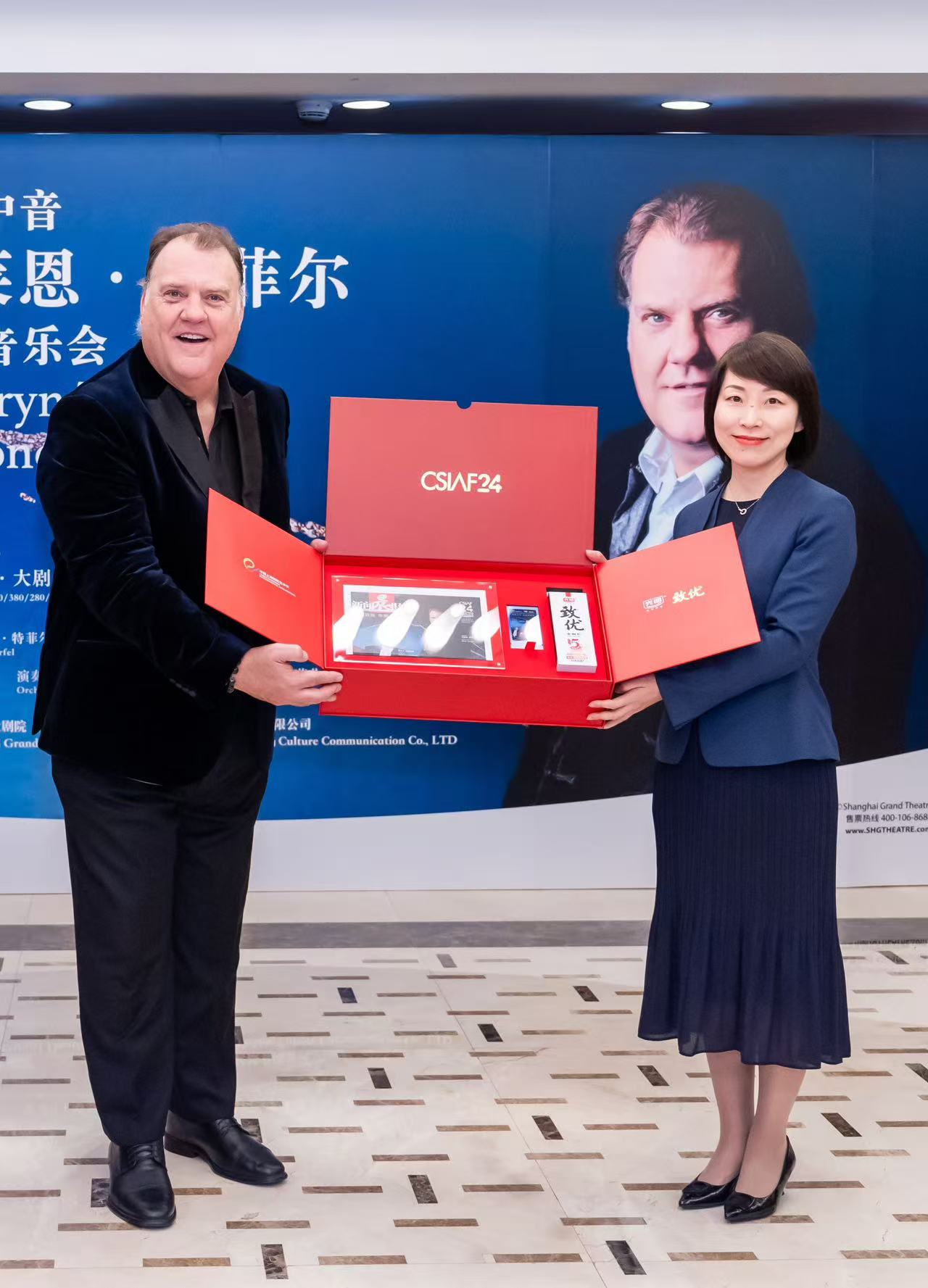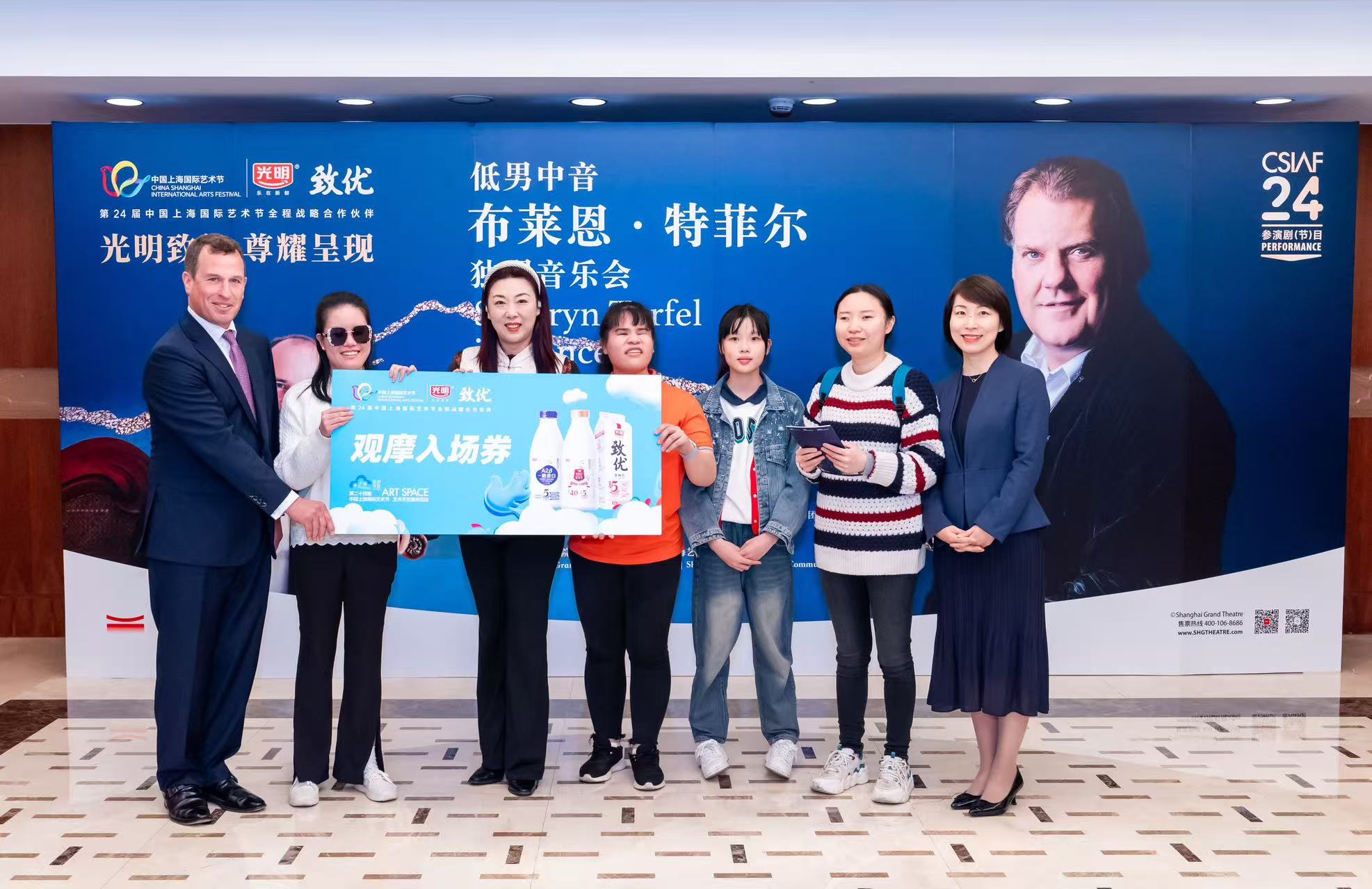 10月26日晚,本届艺术节的高光时刻——由光明致优尊耀呈现的“低男中音布莱恩・特菲尔独唱音乐会”,在上海大剧院震撼上演。演出落幕后,一场承载致敬与温情的光明乳业品牌日活动同步举行。威尔士国宝级歌唱家、“声乐魔术师”布莱恩・特菲尔,著名指挥家詹卢卡·马西阿诺,光明致优品牌代言人、英国王室成员彼得・菲利普斯,光明乳业党委副书记、总裁贲敏等嘉宾齐聚一堂,并邀请视障青年艺术家代表共同欣赏演出,在交流与互动中为这场声乐盛宴画上圆满句号。