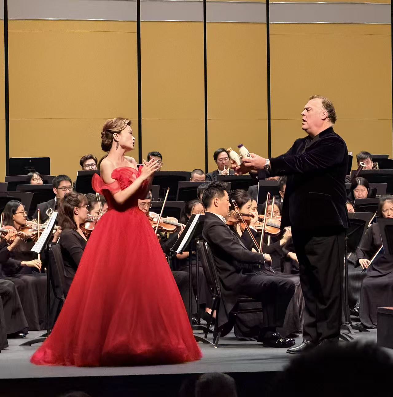 音乐会现场,特菲尔为观众们带来了一份“惊喜”——将光明致优娟姗鲜牛奶融入了演出中,并欣然分享自己与牛奶的深厚渊源。童年时期,他的父亲便是一位农场主,这段成长经历使他对优质乳品有着深刻的认知与情感,他由衷地称赞“牛奶为我的生活增添了美好,光明牛奶是最好的牛奶”。这份源于生活本真的赞赏,也彰显了他对至高品质的追寻。特菲尔对声乐艺术的极致追求、马西阿诺对交响乐的细腻把控,与光明致优深耕乳品、坚守品质的“致优”初心一脉相承。