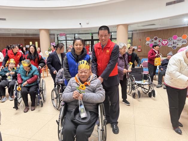 表演环节结束后,金高公交志愿者们为过生日的老人们送上金色向日葵。在传统文化中,金黄色象征着健康、财富与长寿,一朵朵灿烂的向日葵,不仅代表着对老人们身体康健的美好祝愿,更寄托着希望他们永远保持年轻心态、热爱生活的深情厚意。此外,金高公交的志愿者们还协助养老院工作人员布置场地、分发蛋糕,并全程陪伴在老人身边细心照顾。
