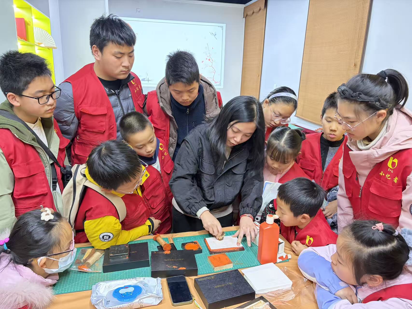 8年级的“小记者”杨媛说,自己平时练习书法,还有7年的素描基础,平时也会设计板报,所以对汉字、字体很有兴趣,参加活动本身对自己很有启发和帮助。收获了满意的拓印作品,6年级的“小记者”刘嘉奕同学则表示,自己很喜欢历史文化知识,手机里的字体也是精选的古风风格,这次活动拓展了自己的眼界,了解了汉字的来源,感受到汉字的魅力。“孩子三年级了,我们都开始对书写汉字重视起来了,感觉这次活动会很有帮助,所以果断报名了。”学生家长韩女士欣慰表示,已经报名参加过几次活动了,孩子非常喜欢也很积极,接下来还会继续关注寒假里的活动招募。