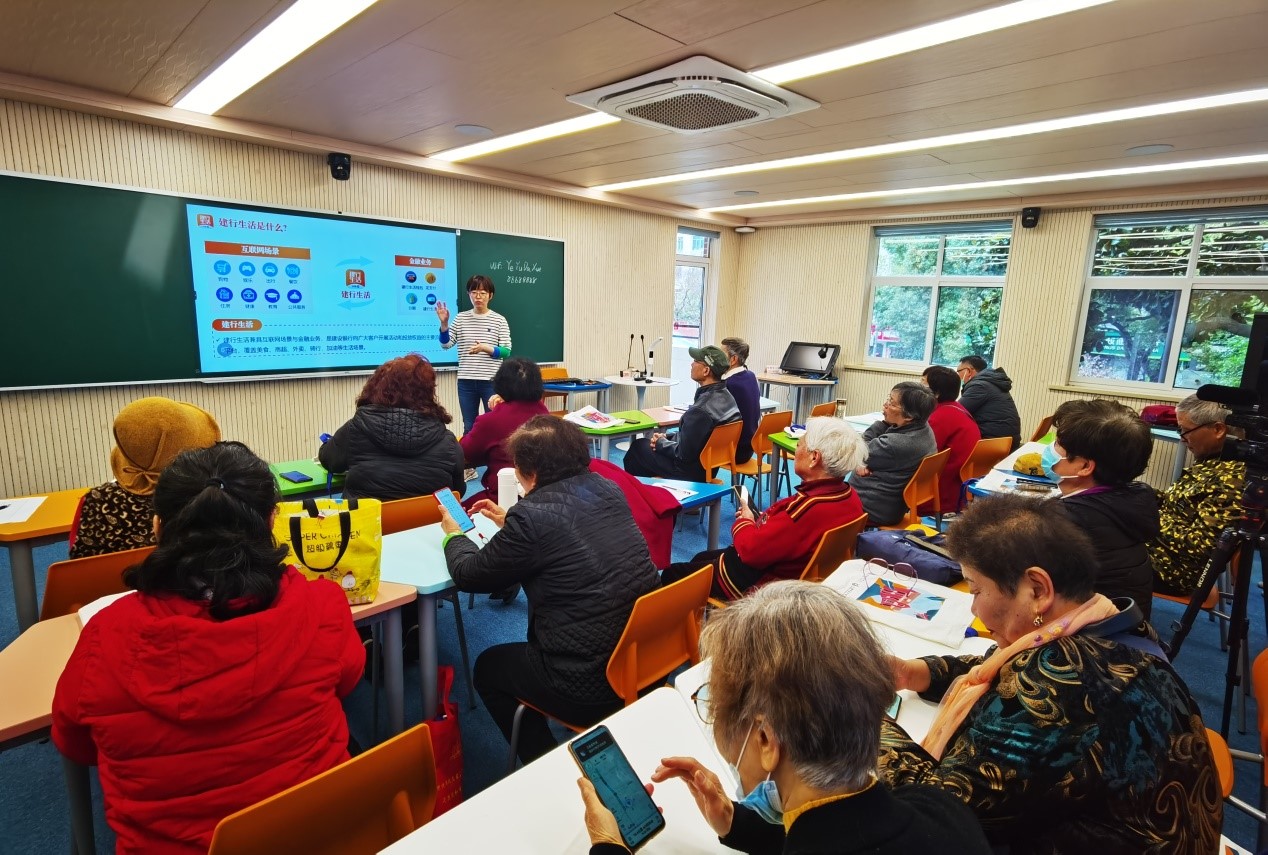 这里是“知识客厅”。每周,网点与街道、社区联办的“银发课堂”准时开讲。课程表紧贴需求:智能手机使用、防范金融诈骗、电子医保凭证申领……客户经理们用最大的耐心,一步一步教学,直到每位老人都能掌握。静安延长路支行更是将课堂“搬进”了静安区老年大学,将养老规划、财富管理等知识变成系统课程,惠及更多学子。
