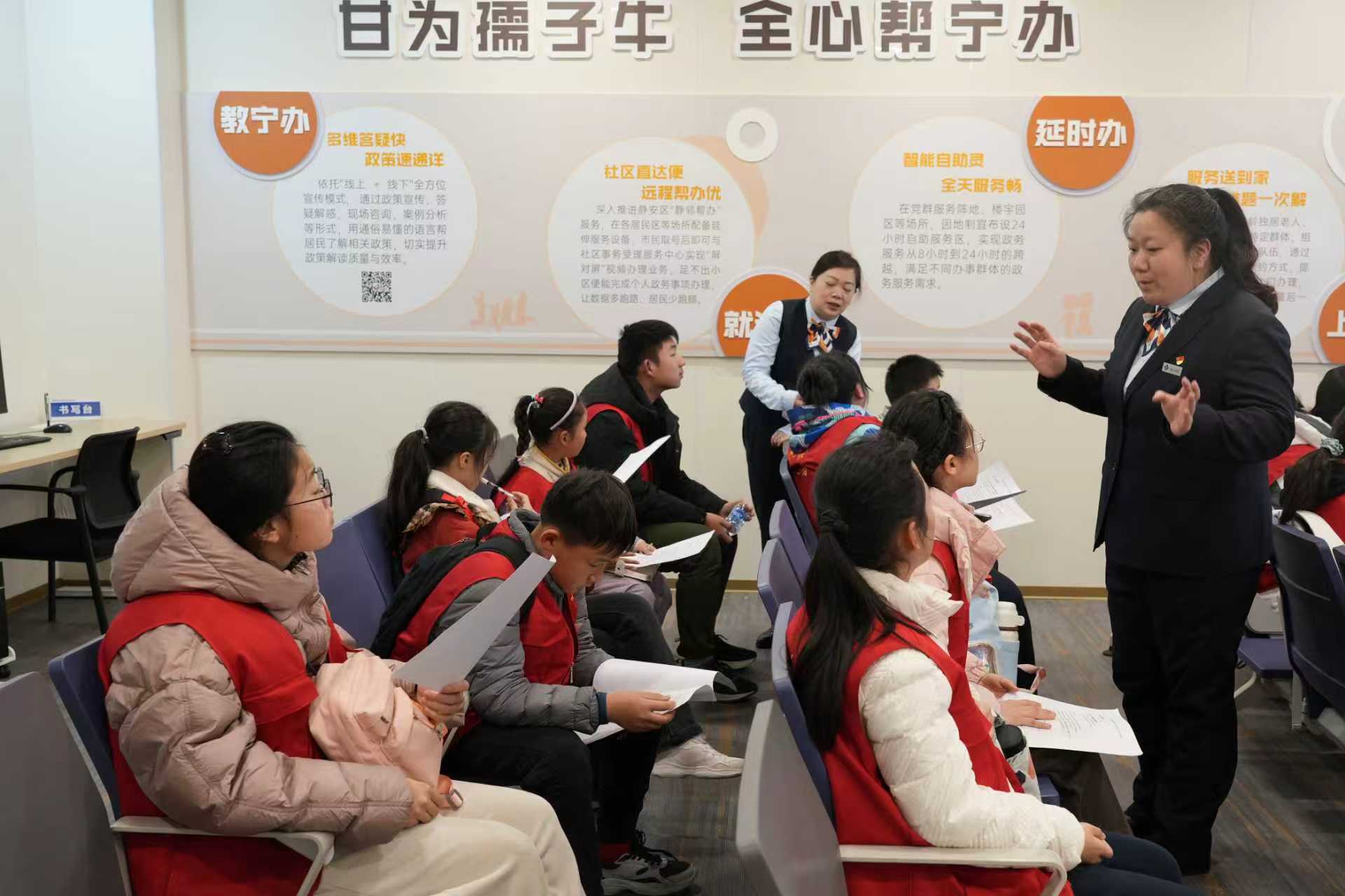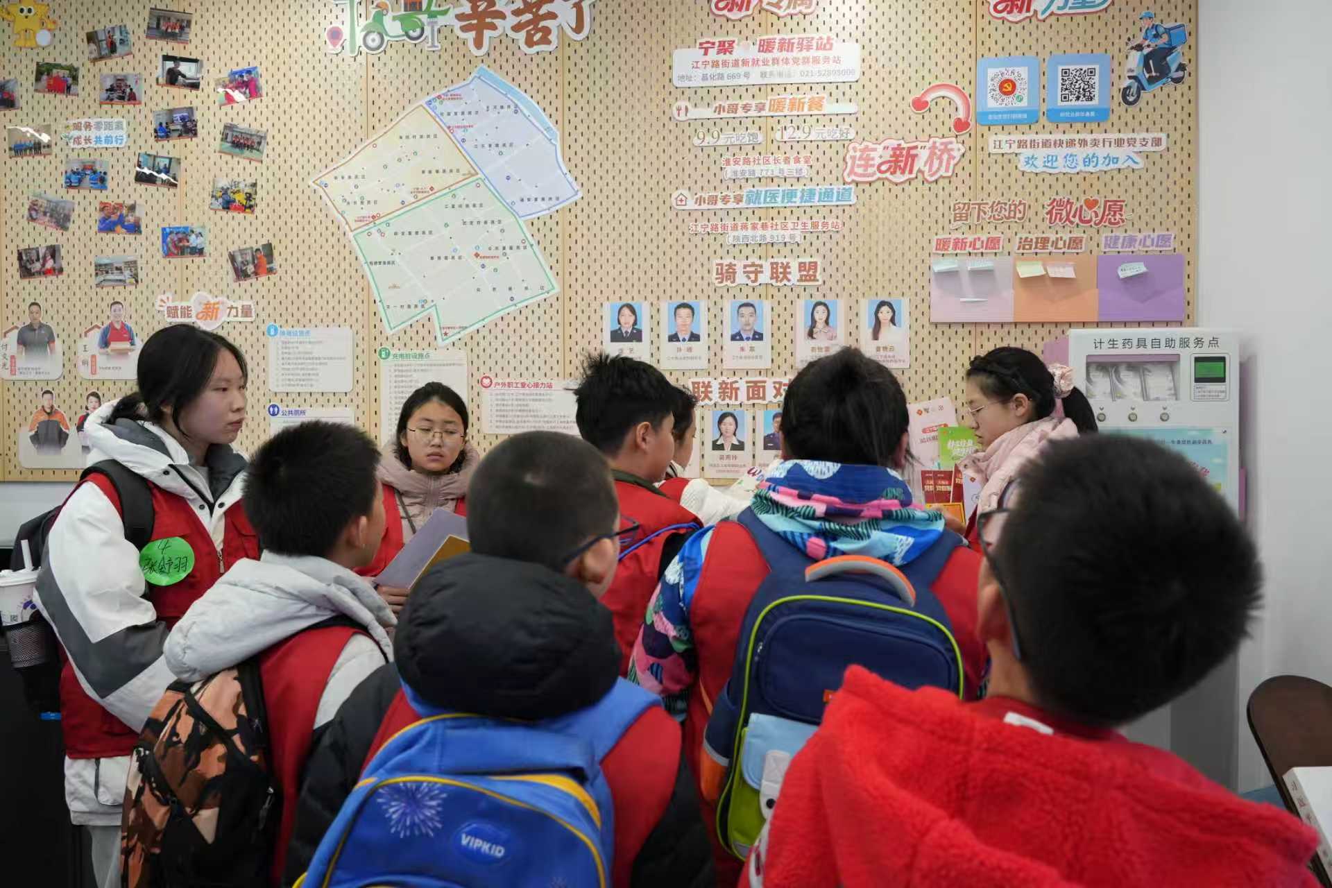 在“行走的新闻课堂”中,“小记者”们又走进江宁路街道社区事务受理服务中心,聆听“静安工匠”胥洁丽和静安“技能之星”奚震虹讲述她们各自在窗口服务的暖心故事。随后,大家跟随昌平党群服务站站长茅锋,走在昌平路——这条始建于1923年的百年道路上,探访解锁老上海的烟火气与厚重感。