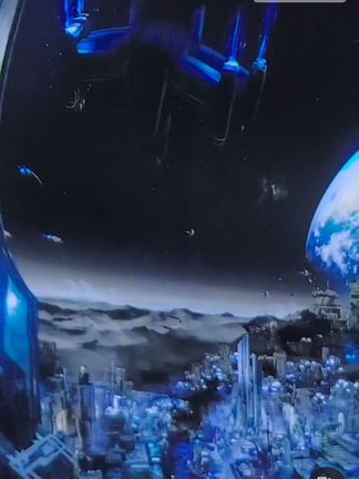 最最刺激的环节,是飞行影院(图4)!我坐上椅子,感觉自己真的坐上了火箭,“嗖”地一下直冲云霄,穿过云层,在太空中飞翔(图5、图6)。那种感觉太震撼了!我真的感受到了太空的神奇和美丽。