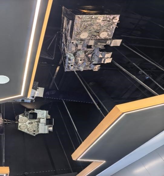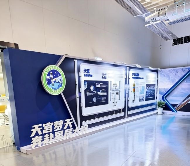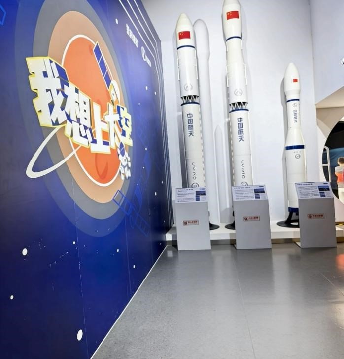 走进航天展厅,各类航天器模型让我目不暇接。映入眼帘的是“天宫梦天 奔赴星辰大海”(图1),看着这些厉害的航天器,我心里特别激动,真为我们祖国感到骄傲!