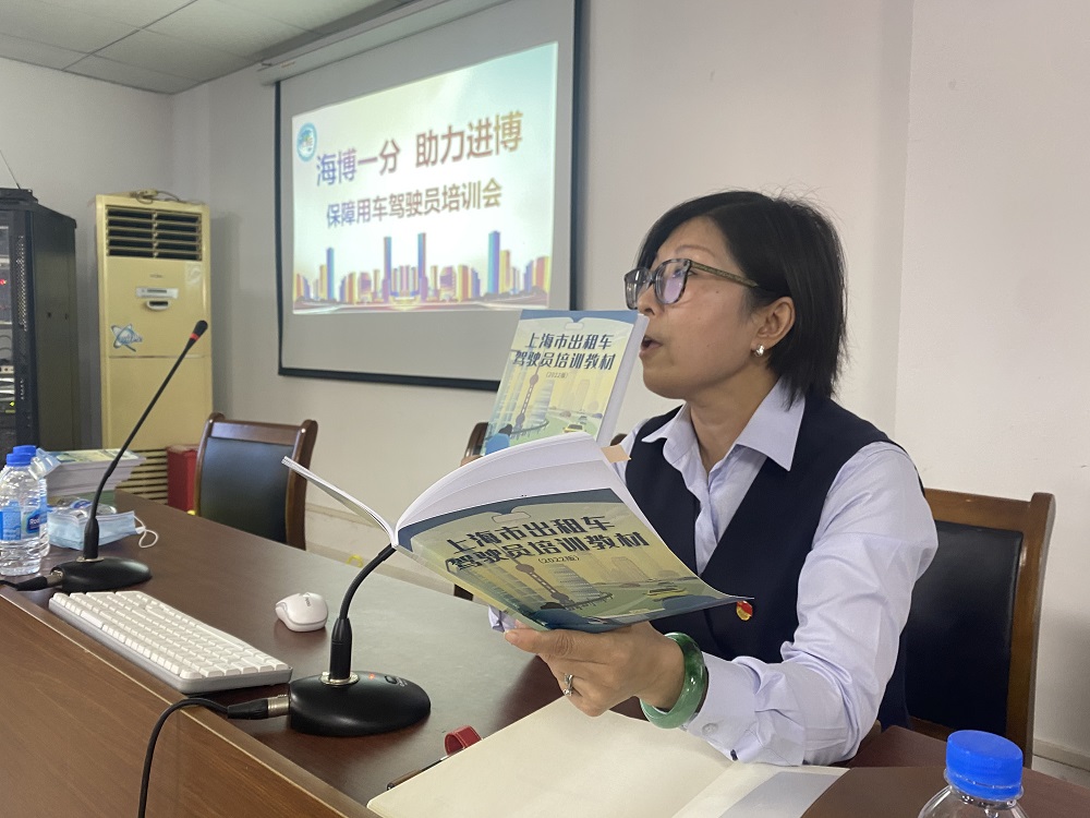 海博一分公司通过对标进博会营运服务要求、保障车须知、新能源车应急抢修知识、防疫保障等内容,制定了培训课件和培训方案。对筛选参加保障车的驾驶员组织了培训。10月20日,还特别邀请虹口交警来到培训现场,为保障车辆专职驾驶员进行安全行车讲座。徐警官也是进博会保障任务的参与者,他的现身说法更能引起驾驶员的共鸣,播放的安全视频、违章照片比起以往枯燥的讲课更能吸引驾驶员的关注,相信海博出租每年不断的对保障车辆驾驶员的全方位培训进行升级,定能进一步树牢保障运力,提升接待服务质量。会上,党总支部书记何军也将出租车驾驶员规范培训新版图书中的重要章节,对驾驶员进行宣讲。分公司也对书中的章节进行摘选制作了广告牌进行张贴、宣传。