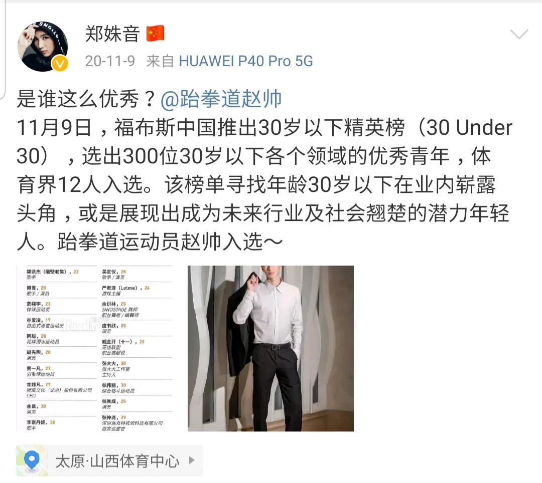 赵帅的微博除了跆拳道就是@郑姝音,力求全方位多角度逛撒狗粮。