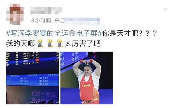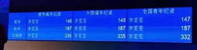 比赛结束后,电子屏上出现了前述一幕:世界纪录、全国纪录共九项纪录保持者,全都是李雯雯。全运会电子屏就这样被李雯雯霸屏了。