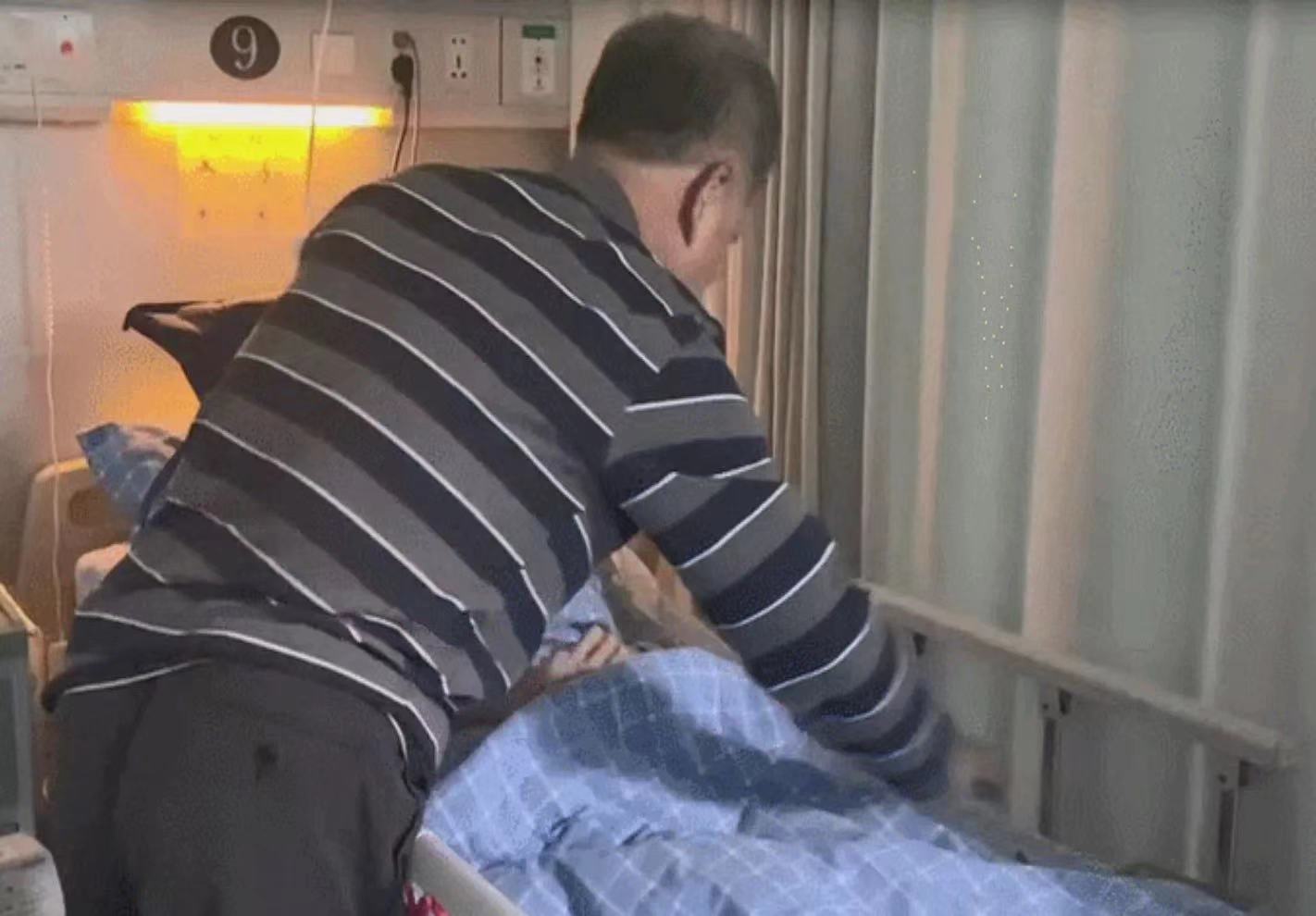 这一幕发生在浙江宁波一家医院,70岁的陈爷爷一直不离不弃陪伴在病床前照顾患癌的老伴。夜里睡觉时,陈爷爷总是将一根红绳系在他和老伴之间,只要老伴有什么动静他就赶紧起来看一下。