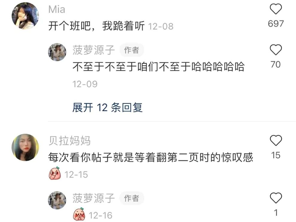 一开始,菠萝做美妆博主全凭兴趣,化妆和拍照常常夜里在寝室完成,有时也会遇到趣事。一次化妆化到一半,一群辅导员进来查违禁电器,看到她桌上一大堆化妆品、打光灯满脸诧异。其中一位辅导员拿起她的灯,一脸疑惑地问:“你在干嘛?在直播吗?”而顶着刚刚化了半张脸的菠萝没敢说一句话。这还算好,最“惨”的一次是她在灯光效果下化了一个自以为很好的妆,走出门看到大家异样的眼光才发觉不对,“所有人的目光都在说:你被打了一拳吗?因为灯光很亮很白,就化得太浓了。”她说,“所以化妆时一定要买一盏对的灯,血泪教训。”