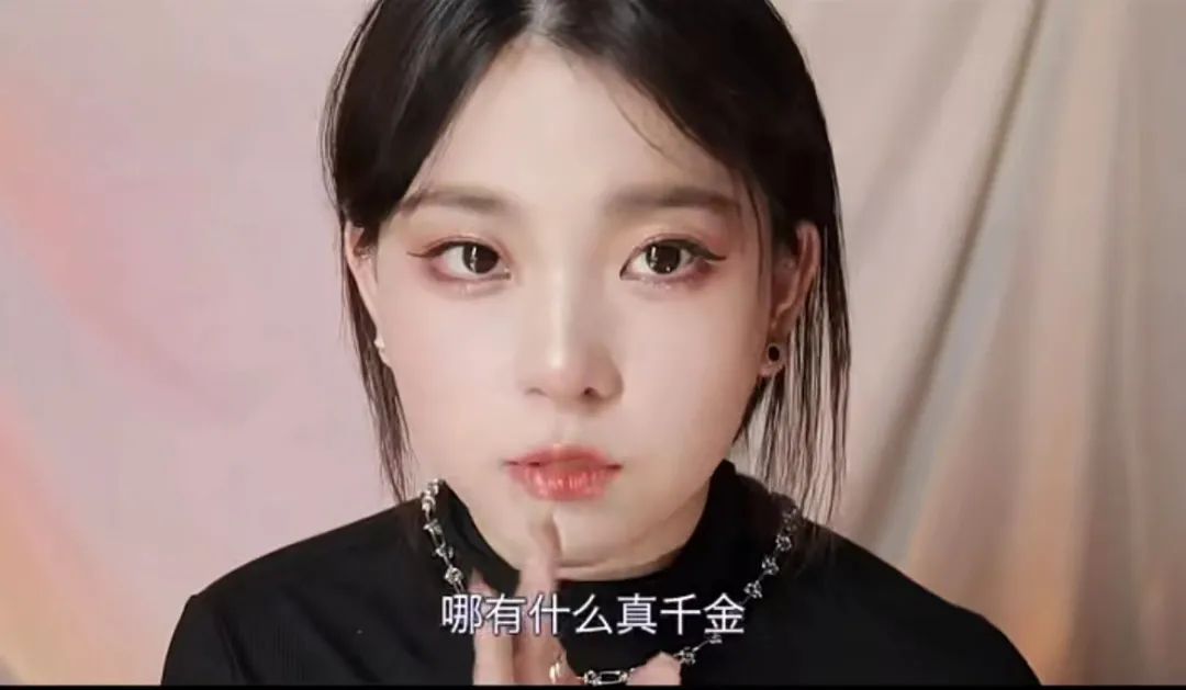 黑猫的判断没有错。这支5分钟时长的视频发布后,很快就成了热门,收获了6.2万的点赞量。视频里,黑猫详细分解了千金妆的步骤。“黑眼圈,法令纹,全部用半三角遮暇法给它遮牢遮死,搞出一个面部平整度,底子平整健康了,才能叠加什么富贵感、千金感的。”从初中开始玩cosplay的黑猫,喜欢用二次元感的语言风格讲解,“眉毛跟眼妆这两块是显得贵气精致的重点。用浅色眉粉打底,再在眉毛边缘的地方晕开,眉毛便有了蓬松雾感。用睫毛夹让睫毛挺翘,具有重毛流感,眼睑上下贴上闪片,便有了钱气……”