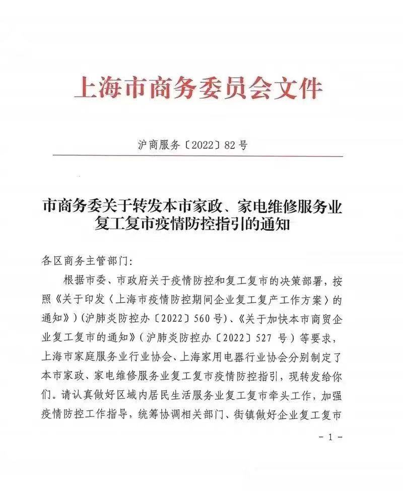 近日,上海市家庭服务业行业协会制定了本市家政复工复市疫情防控指引。