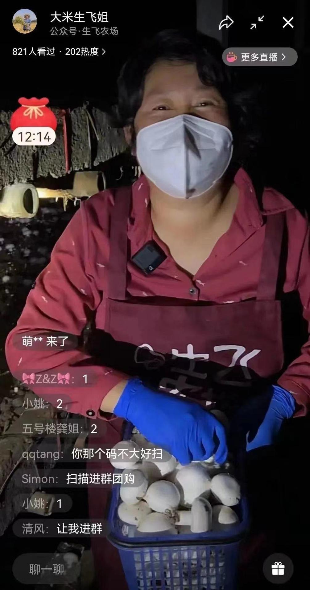 “我们煲汤、炒菜,怎么搭配都好吃;放些黄油煎一下,再撒点胡椒粉,口感非常鲜。” 黄生飞的直播推荐吸引了许多“团长”下单,扫码、建群,这样的流程在近段时间已重复多次,很快,两个社区群满员,直播间人数超过千人。连续几日来,朱龙弟面临滞销的蘑菇几近售完。