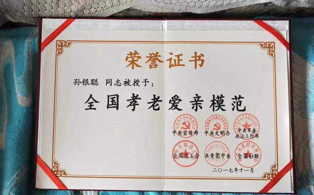 2015年9月,孙银聪被评为“运城好人”。2016年,她又获得了“山西好人榜”孝老爱亲道德模范称号。