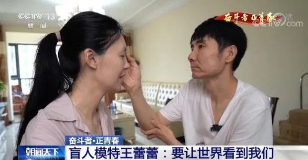 王蕾蕾身上有股与生俱来的倔强,视力不好,她学会了听声辨位,她会在活动前先熟悉场地,记住灯光的位置、舞台的步数和台阶。