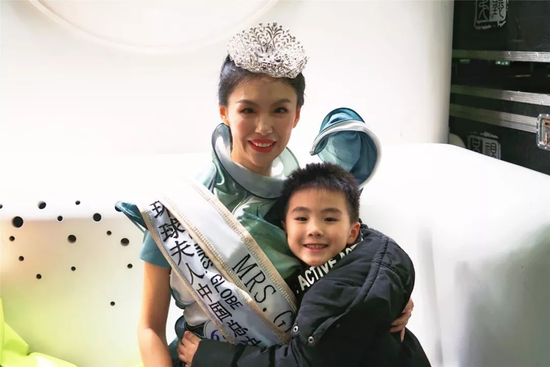 一家人在后台忙个不停,卸妆、换装,艾淑义牵着她一路小跑,大儿子捧着礼服,小儿子在一旁蹦蹦跳跳,全家人脸上笑意满满。
