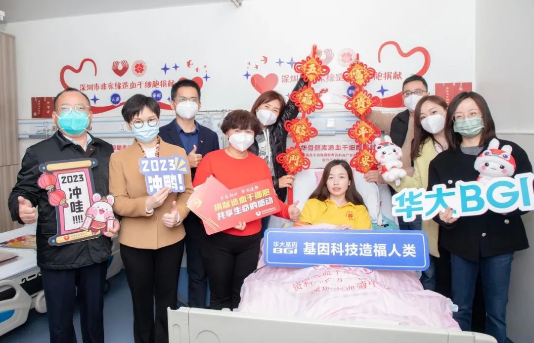 早在2010年3月,刘佳就加入了中华骨髓库,经历近13年漫长的等待,终于在2022年6月收到与一名重症地贫患儿配型成功的消息。2023年1月16日,深圳市血液中心副主任刘晋洪、深圳市血液中心社会事务部部长蓝欲晓、“天下无贫”公益专项发起人-华大基因副总经理彭智宇以及华大鉴正副总经理刘晓霙来到深圳市第二人民医院看望并慰问了正在接受造血干细胞采集的刘佳,历经3个小时,她的造血干细胞混悬液采集完成,接下来将会在第一时间输入到地贫患儿体内,完成生命的接力。
