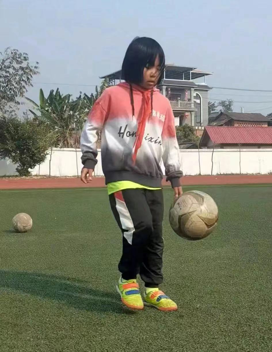 赵希瑶今年三年级,是勐董镇中心完小足球实验班的学生,练习足球已有三年时间,黝黑的皮肤、结实的身材、一头短发,连连上演过人和射门“名场面”,让她在当地小学生里小有名气。
