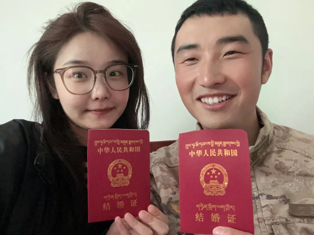 “我愿意嫁给你,确定且肯定!成为一名军嫂,是我的荣幸。”求婚后的第二天,炉江成和李梦娇在驻地登记结婚,李梦娇在朋友圈写下这样一句爱情宣言。