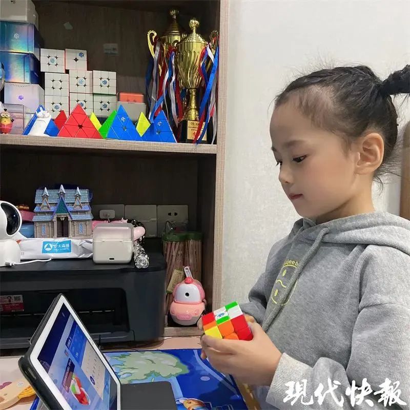 曹岂娴的母亲钱晶晶表示,女儿大约两年前开始接受魔方训练,平时训练非常刻苦,有时一天会反复拼几百次魔方。自从学了魔方后,她发现女儿学数学更轻松了,记东西也更快了。“学魔方不仅能提高孩子的专注力和思维能力,还能增强亲子关系,所以我们在孩子4岁时就给她报名了魔方课程。”钱晶晶说,在学习魔方之前,她感觉女儿性格很内向,不爱和其他小朋友交流,如今孩子显得更加开朗,也会给其他同学分享自己的魔方技巧。
