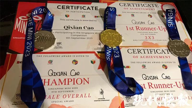 “打破世界纪录是一个小目标,现在通过了这个目标,我非常开心。”曹岂娴说。记者了解到,这是海安6岁小将曹岂娴第一次参加WCA国际魔方公开赛。
