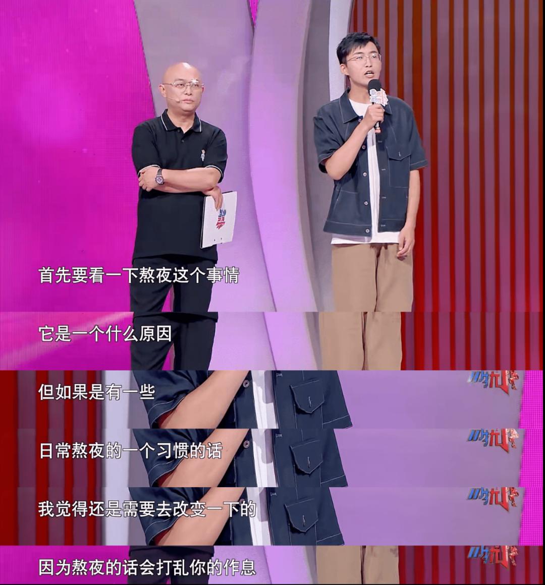 节目中的男嘉宾希望未来的另一半养成早睡的习惯。女嘉宾则表示自己很喜欢熬夜,如果不想改变生活习惯怎么办?男嘉宾坚定地认为如果不是特殊原因导致的熬夜应该学会去改变,毕竟熬夜会打乱生活作息,对健康不利。