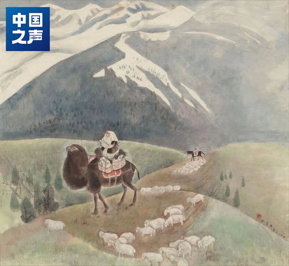 1975年,赵以雄第一次踏上新疆的土地。他从乌鲁木齐到伊犁,再到塔什库尔干。他脚下飞快地走,笔下尽情地画。雪山牧场、戈壁瀚海,他看不够,更画不完。