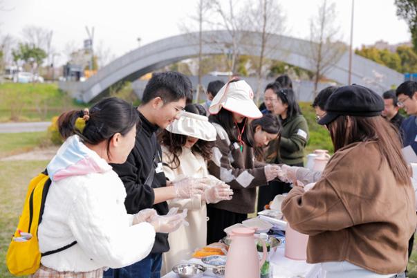 “上巳节本就是古人鼓励青年走向户外的节日,我们希望通过传统习俗的破冰,让大家在自然中拉近距离。”奉贤区总工会副主席谢洁表示。活动中,不少青年交换了联系方式,相约下次踏青。暮色中,湖畔的团扇与剪纸作品映着晚霞,仿佛千年前的曲水流觞仍在续写新的春日故事。