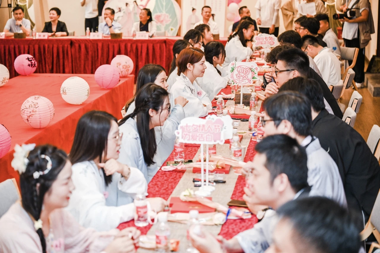 七夕将至,徐行镇总工会携手镇团委共同举办了一场穿越古今的七夕活动。来自全镇企事业单位的50余名青年职工欢聚一堂,在游戏中体验古风之趣,共赴一段“寻缘”之旅。