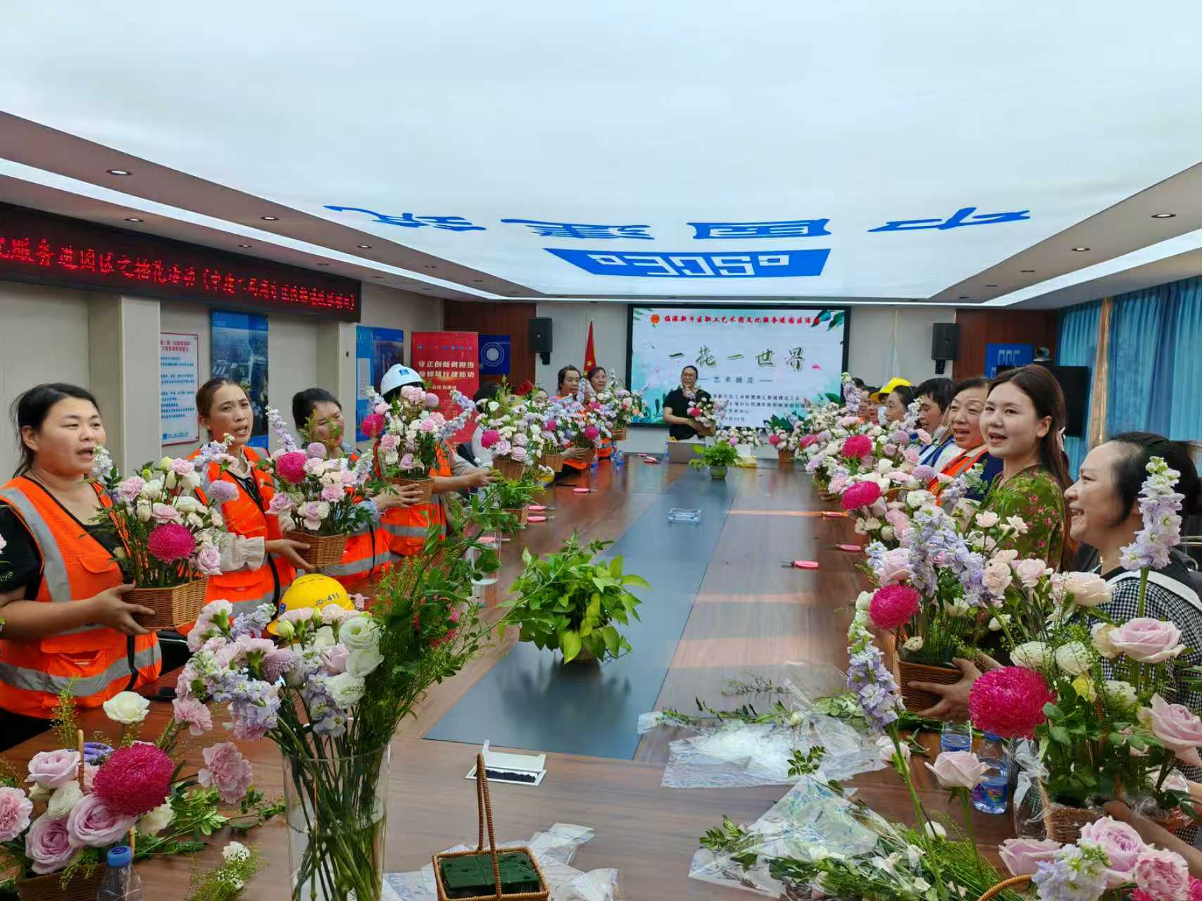 近日,中建二局上海分公司浦东医院临港院区项目开展“以花为媒庆国庆,巧手传情迎中秋”品生活插花活动,临港新片区职工艺术团走进建筑工地,为项目数十名女工友送上节日关怀和暖心服务。